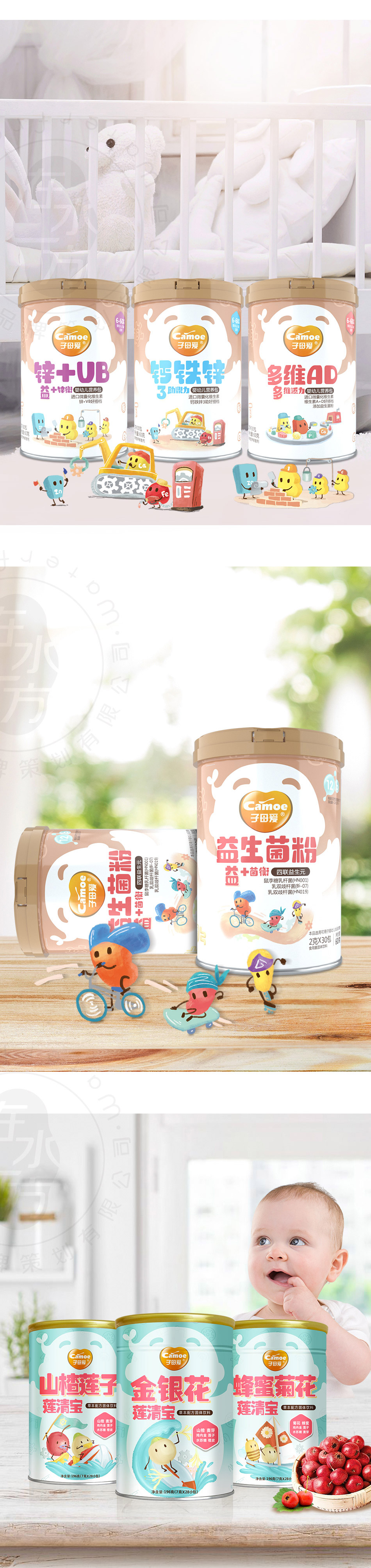 項(xiàng)目方案:子母愛品牌圍繞嬰童輔食營養(yǎng)品領(lǐng)域打造有情感有品質(zhì)有親和力的品牌形象,迎合當(dāng)前年輕消費(fèi)市場(chǎng)的審美和體驗(yàn)需求,用原創(chuàng)性手繪風(fēng)格增加產(chǎn)品訴求力,提升陳列效果的同時(shí)也有助于品牌口碑和營銷的推進(jìn)。