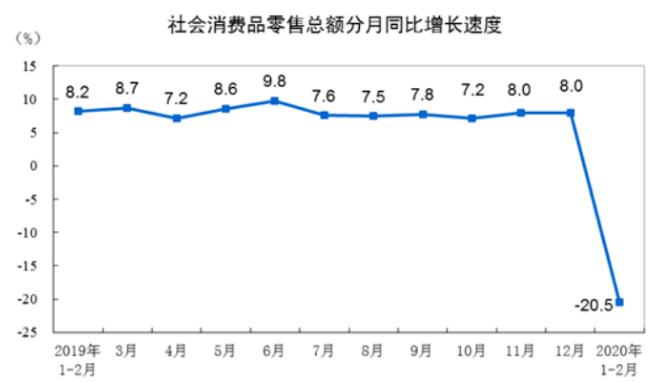 其中,消費(fèi)方面,1-2月份,社會(huì)消費(fèi)品零售總額52130億元,同比下降20.5%。