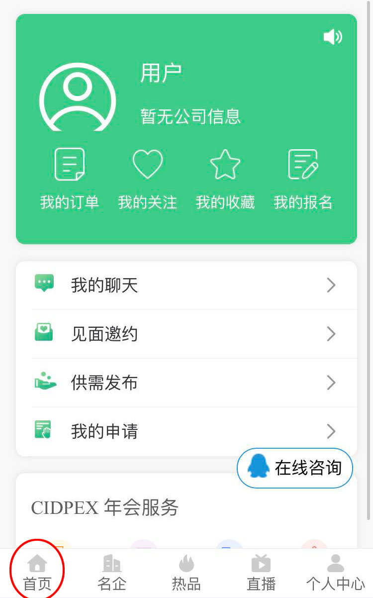 二、登錄進(jìn)入個人中心后點擊左下角“首頁”返回“首頁”