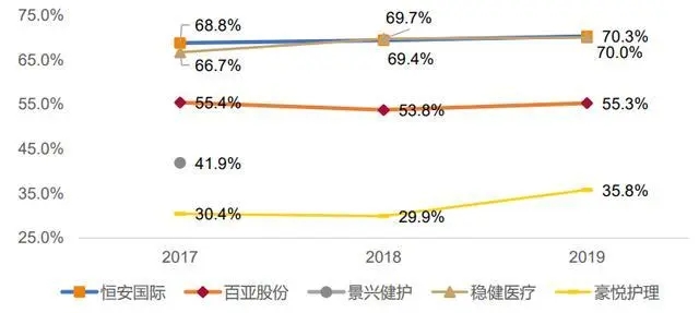 從整體的費(fèi)率來(lái)看,穩(wěn)健醫(yī)療最高為37.5%,百亞股份次之為32.0%,豪悅護(hù)理最低為11.1%。拆分來(lái)看,擁有自主品牌的穩(wěn)健醫(yī)療和百亞股份 2019年銷(xiāo)售費(fèi)用率分別為 30%和 27%,恒安國(guó)際次之為 14%,做代工業(yè)務(wù)的豪悅護(hù)理僅為5%。管理費(fèi)用率方面,恒安國(guó)際最高,2019年為 5.7%,豪悅護(hù)理最低為1.8%。研發(fā)費(fèi)用率方面,豪悅護(hù)理和穩(wěn)健醫(yī)療最高,2019年均為 3.4%。
