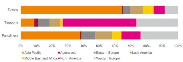 2019 年全球女性衛(wèi)生用品區(qū)域分布情況