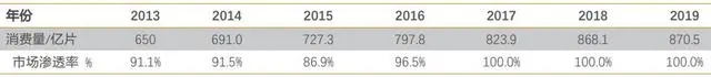 2013 至 2019年中國(guó)衛(wèi)生巾普及率(估測(cè))
