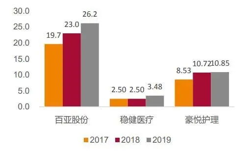 從單價(jià)來(lái)看,穩(wěn)健醫(yī)療定位最高,豪悅護(hù)理由于代工模式出廠價(jià)最低。2019年百亞股份、穩(wěn)健醫(yī)療、豪悅護(hù)理的女性衛(wèi)生用品整體出廠價(jià)分別為 042/0.81/0.18 元,同比變化 11%-8%/6%。景興健護(hù)是委托加工模式,2017年衛(wèi)生巾包括護(hù)墊的單片售價(jià)為 0.39元,采購(gòu)價(jià)為0.20元。豪悅護(hù)理是代工模式,2019年衛(wèi)生巾和經(jīng)期褲出廠價(jià)分別為0.17元/片和1.44 元/片