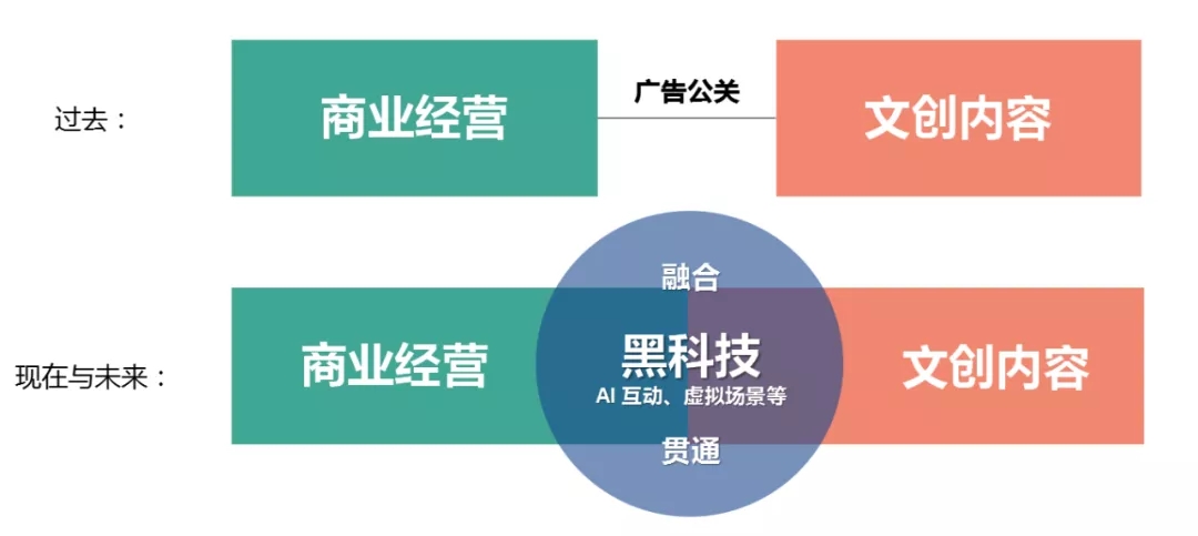 現(xiàn)在與未來:商業(yè)運營和文創(chuàng)內(nèi)容之間形成彼此需要、高度融合的關系,中間的催化劑是不斷變革發(fā)展的黑科技。