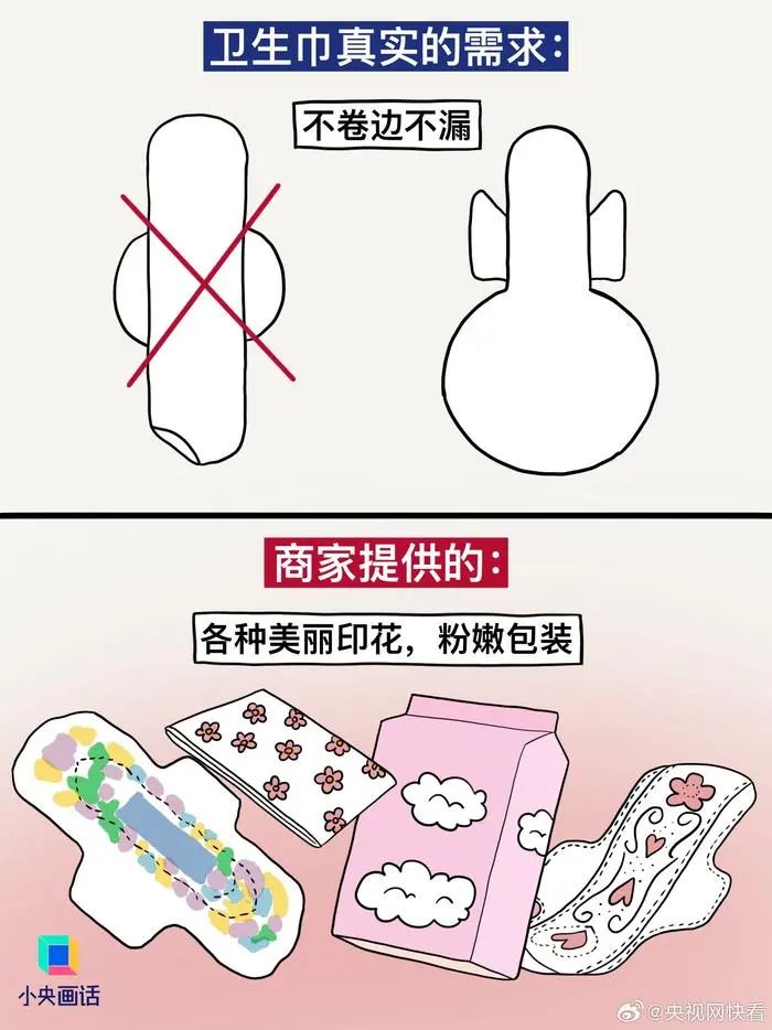 【#別拿消費主義那套來做衛(wèi)生巾#】想不通,衛(wèi)生巾這種每個月都要用的東西,怎么會做得又貴又難用。商家以為我需要:加冰、加熱、加玻尿酸、粉嫩包裝、明星代言……實際我需要的:干凈衛(wèi)生、護翼好貼、安全不漏、價格適中。衛(wèi)生巾是日用品,別搞消費主義輕奢那一套。(繪圖.阿彬的漫畫生活)#有種女性貧困叫月經(jīng)貧困#
